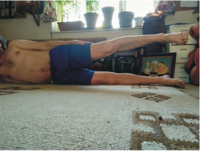 | 14 | sides | hips and through legs to shoulders | relax doing this to gain a stretch by holding it if like me usually not going too far easily. The arms stretching reveals successful release of the midsection | |
